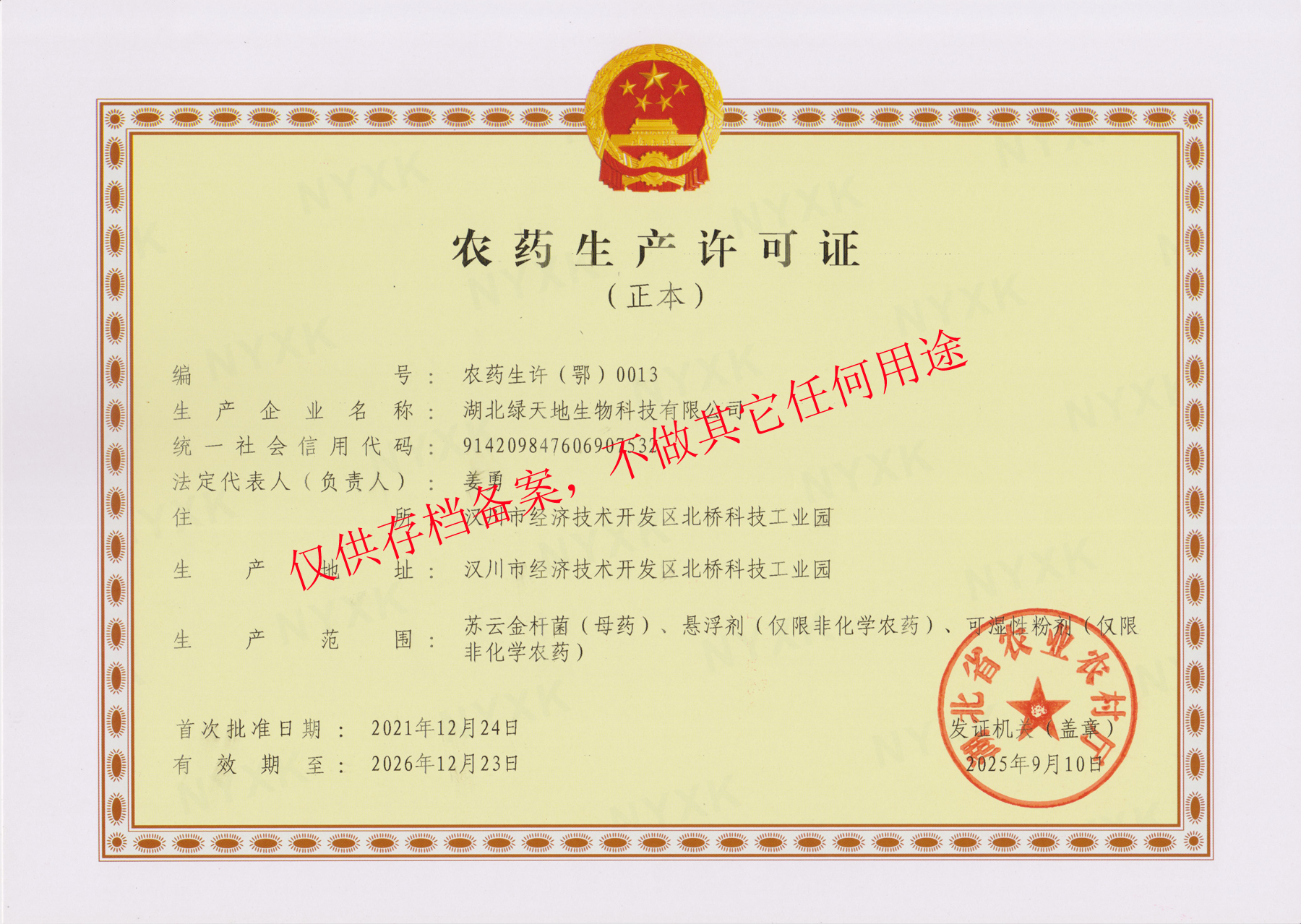 農藥生產許可證